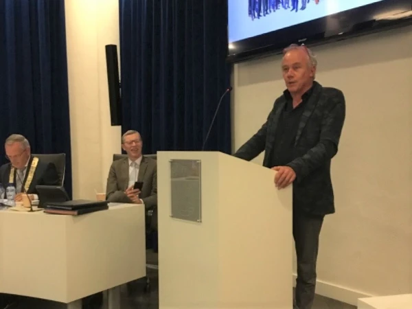 Na een avond vol wijzigingen en nieuwe ideeën volgde er nog een moment van afscheid. Wethouder Hans van Daalen wordt per 1 december burgemeester in Ermelo. Zoals hij zelf zei in zijn speech, had hij dit ambt graag gecombineerd met zijn wethouderschap in Barneveld, maar dat is bij wet verboden. Dat dit een grap was, was duidelijk. Hans heeft Barneveld 12½ jaar met volle overgave gediend, en dat was meer dan een dagtaak. Als waardering ontving hij de zilveren speld van de gemeente.