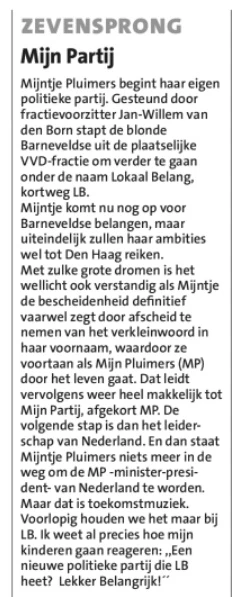 Hartelijk dank voor de leuke column in de Barneveldse Krant.