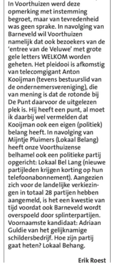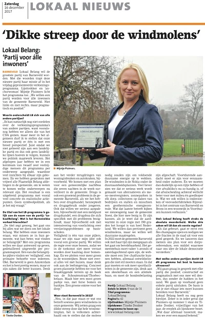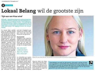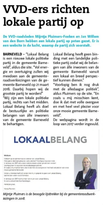 Aandacht voor de oprichting van Lokaal Belang in Barneveld Vandaag.