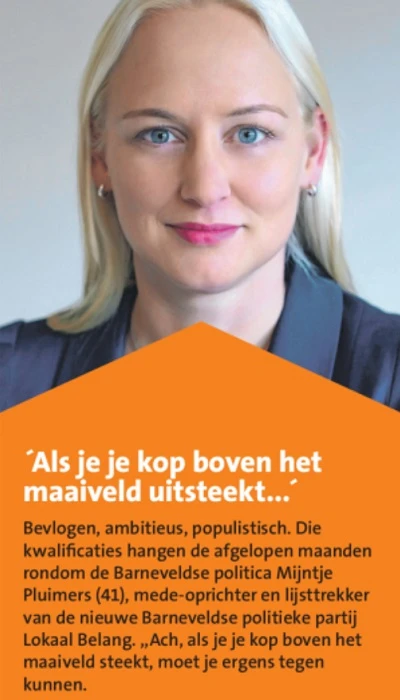 ,,Wij gaan graag in gesprek met elke partij die positief, constructief en pragmatisch met ons mee wil denken, dus zonder de hakken in het zand. We gaan op voorhand geen enkele partij uitsluiten. De basis is dat je met elkaar iets moet kunnen bereiken voor Barneveld.''