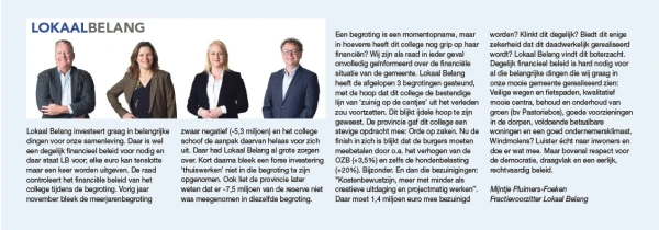 Het belang van onze burgers en bedrijven staat hierbij centraal. En dat wil het team van Lokaal Belang in woord (het verkiezingsprogramma) en daad uitdragen.