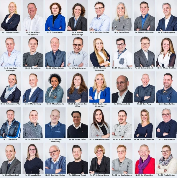 Lokaal Belang presenteert met grote trots de 40 kandidaten op de kieslijst van Lokaal Belang. Een gevarieerde groep optimistische, hard werkende en krachtige mensen die met hun voeten midden in de samenleving staan. Het is een mix van ervaring, nieuw talent, jong en ouder, met diverse achtergronden en kennisgebieden.